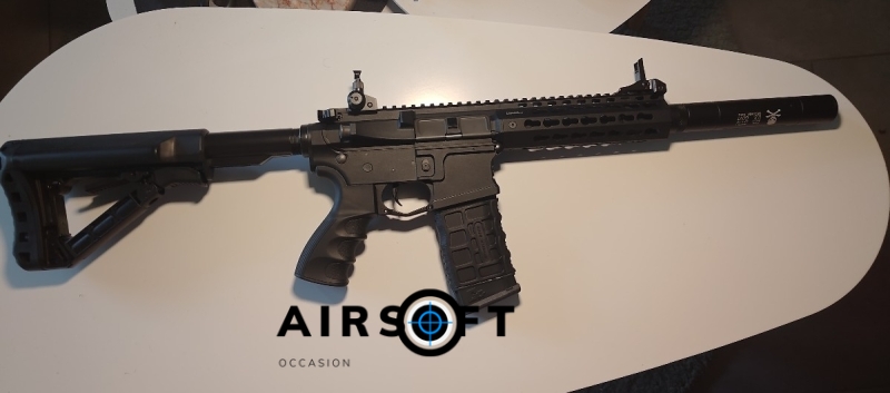 Réplique comme neuve, jamais joué, silencieux socom, chargeur supplémentaire, batterie et chargeur compris, aucune modification interne, MOSFET